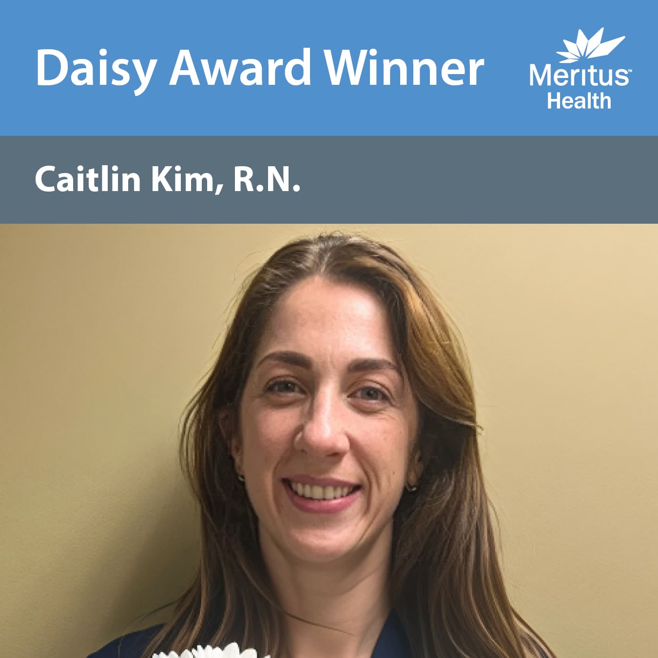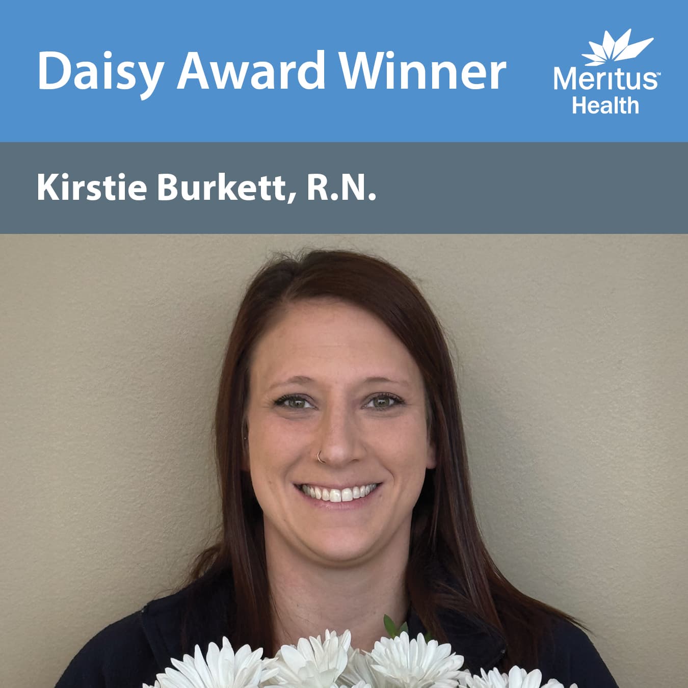 The DAISY Award is an international program that rewards and celebrates the extraordinary clinical skill and compassionate care given by nurses every day. Meritus Health is proud to be a DAISY Award Partner, recognizing one of our nurses monthly with this special honor. To find out more about the program, including the growing list of Partners, please visit DAISYfoundation.org.