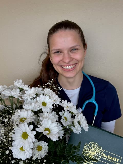 A registered nurse with 40 years of experience nominated Arielle Black, BSN, RN, from the Emergency Department for the Daisy Award. The woman described her stressful journey navigating her husband's pancreatic cancer diagnosis. In October, they had to visit the Emergency Department, where they met Arielle. Despite the husband's altered mental status, Arielle listened attentively to the woman’s concerns, provided emotional support, and communicated effectively. Arielle's kindness, attentiveness and excellent communication skills made a significant positive impact on the woman during a difficult time. She was surprised to learn that Arielle had only been working there for six months, as she demonstrated qualities of a seasoned nurse. The woman praised Arielle for going above and beyond in her care, making them feel heard and cared for, and highlighted her as an asset to the team.
